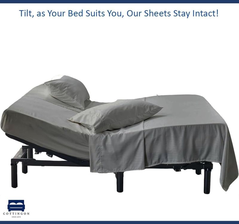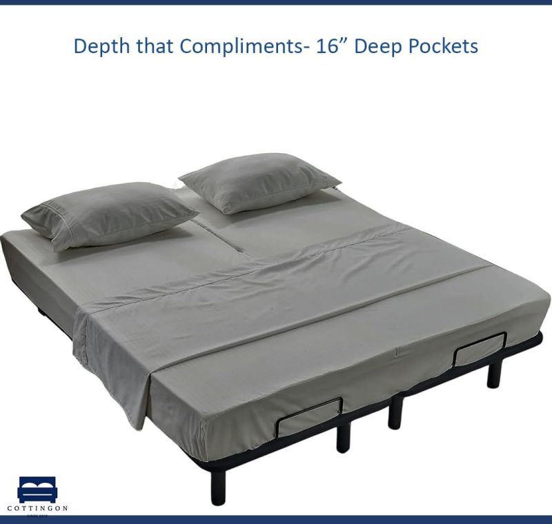 Cottingon 4 Piece Flex Head King Sheet Set, Top 34 Inch Split Sheets for Sleep Number Adjustable Beds, Soft Breathable 100% Egyptian Cotton, Fits Upto 16" Deep Mattress 78"X80"+ 34", Light Grey