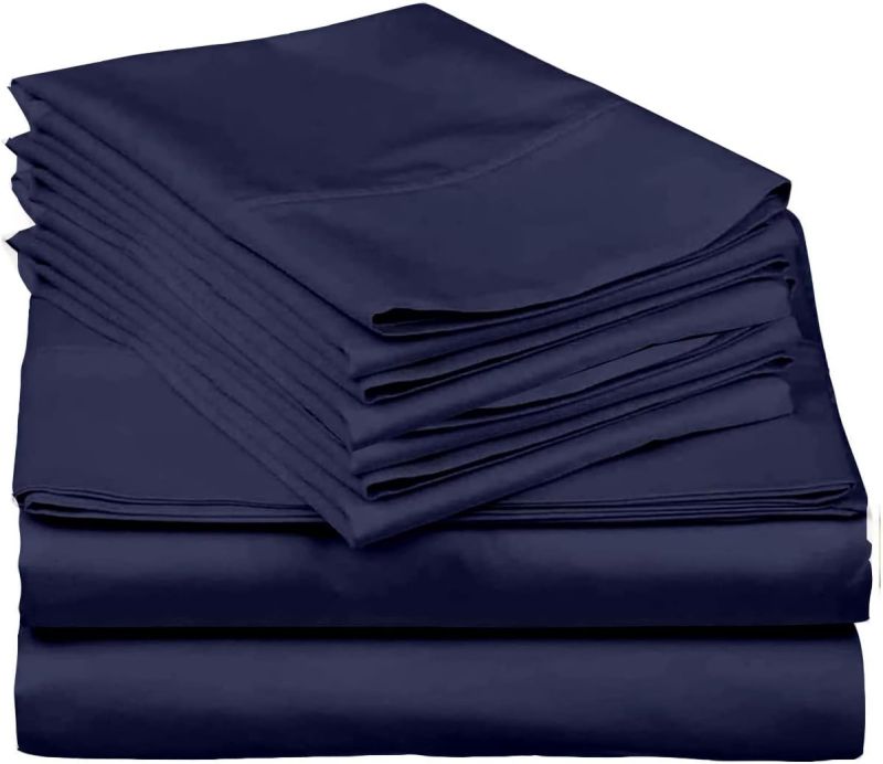 Cottingon California King Size Sheet Set, 6 Piece Set - 1 PC Fitted Sheet Only (California King,Navy Blue)