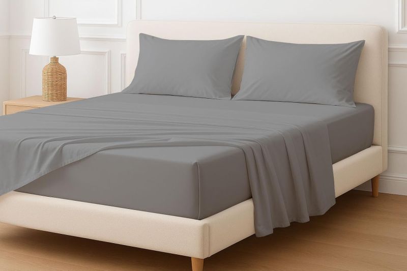 Cottingon California King Size Sheet Set, 6 Piece Set - 1 PC Fitted Sheet Only (California King,Light Grey)