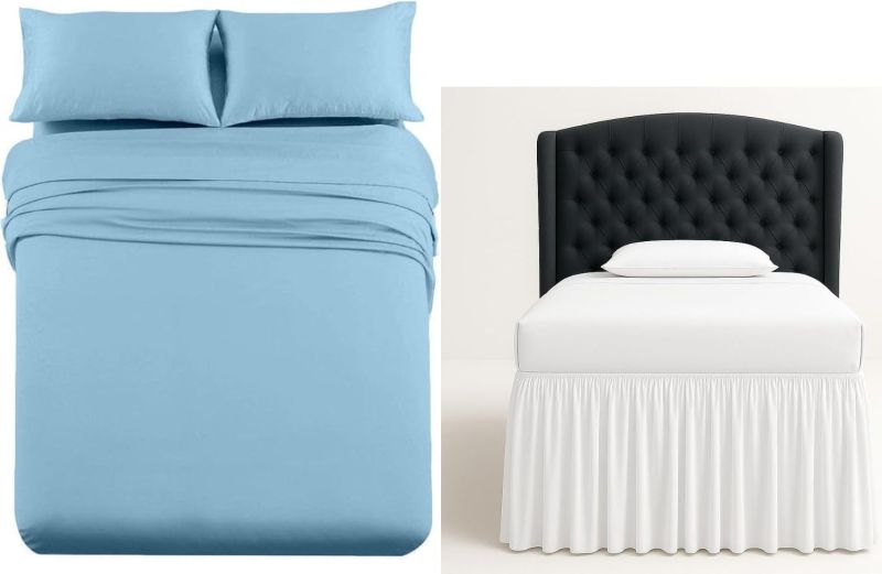 6-Piece Complete Dorm Bedding Set: Includes 1 flat sheet, 1 fitted sheet, 4 pillowcases and 1 bed skirt with a 36-inch drop – everything needed for a dorm Twin XL bed.