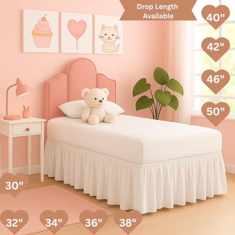 - Designed to Fit Standard Twin XL Dorm Beds with Precision : This bed skirt is tailored to fit Twin XL mattresses perfectly commonly found in college dorms,measuring 39" x 80". It features a 36" tailored drop that covers the space under your bed, making it ideal for concealing storage while giving your room a polished, organized look.