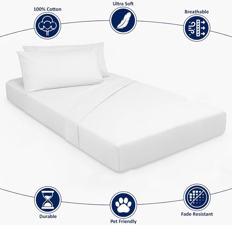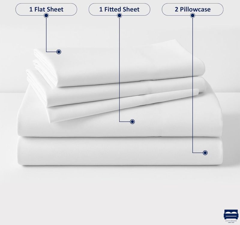 - Cot Size 4 Piece Sheet Set Includes 2 Pillowcases 20" x 30", 1 Flat Sheet 66" x 96" and 1 Fitted Sheet 33" x 75", with full 360 elastic to fit Upto 7 Inch Deep Cot Bed, RV, Guest Bed, Camping Bed, TriFold Bed, Narrow Twin Bed Mattresses Keeping it Snug without Shifting.