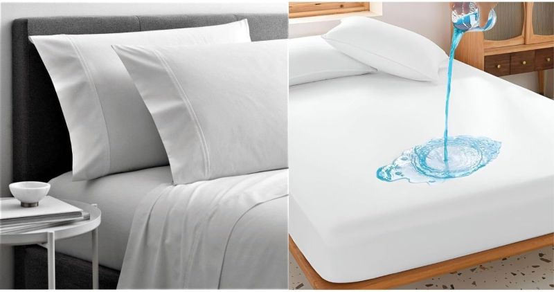 Cottingon 4-Piece RV King Sheet Set & Waterproof Fitted Mattress Protector - 100% Egyptian Cotton, Soft, Moisture-Wicking, Fits 15” Deep Mattress, RV King 72x80