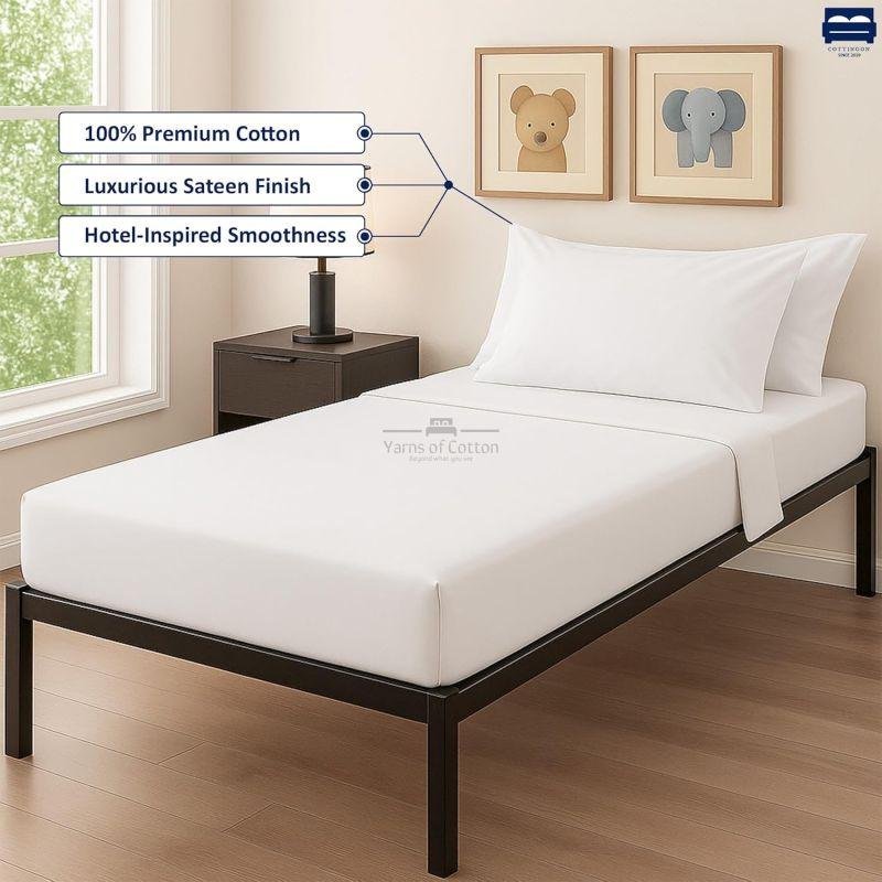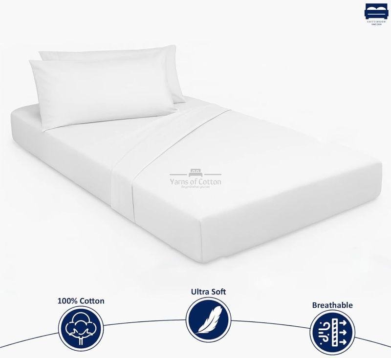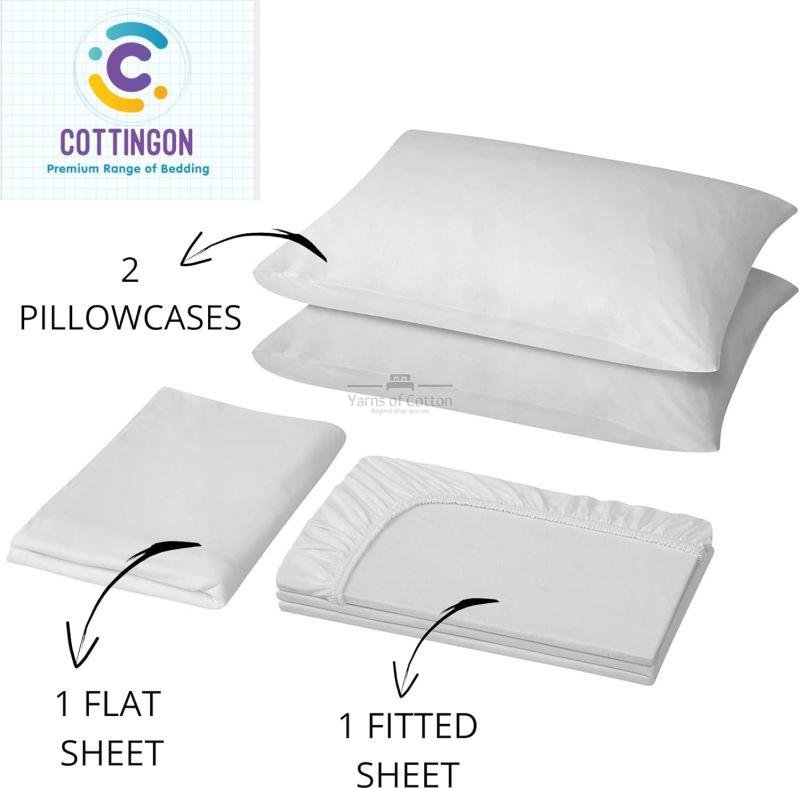 Cottingon 33"x75" Cot Sheet and Pillow Case 4 Piece Set, 100% Egyptain Cotton Soft Bedding Perfect for Rollaway, Folding, Guest Bed Frame, Fits Upto 7" Deep Mattress, White Solid