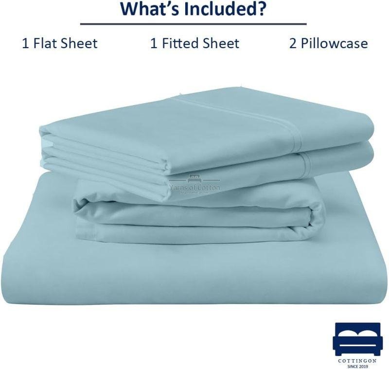 Cottingon RV King Sheets 72 x 80,Luxury Soft 100% Egyptian Cotton, 4 Pcs Camper Bedding Set to Fit Upto 15" Deep Custom RV Mattress, Light Blue Solid