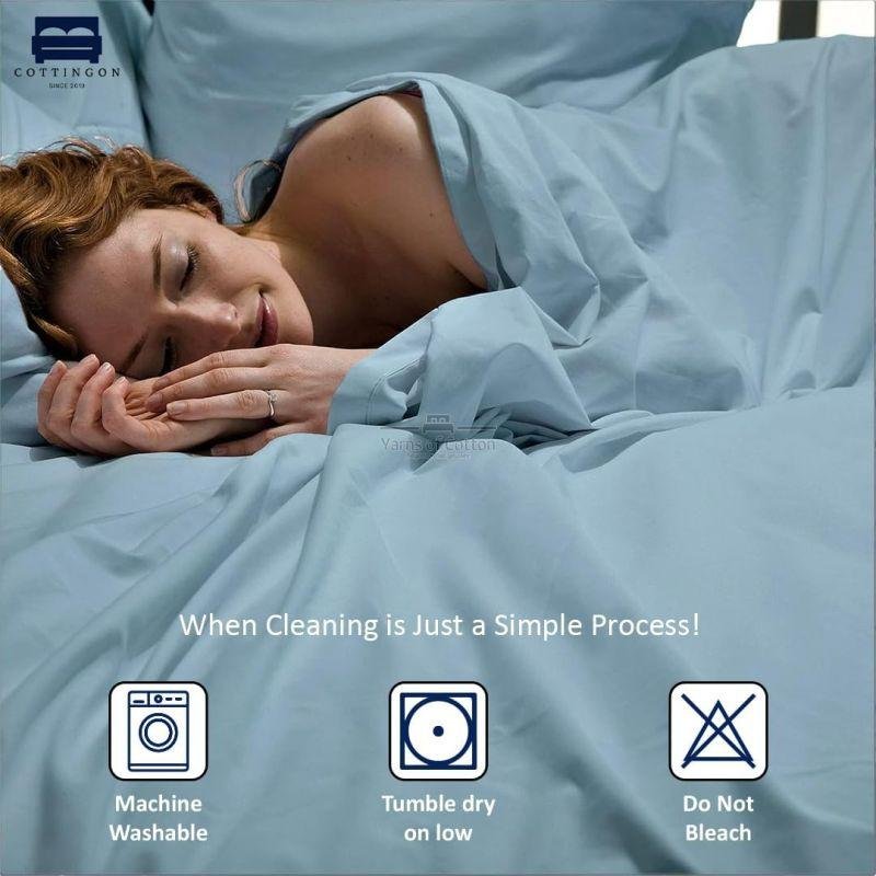 Washcare Instructions: Machine Wash ou 100% Egyptian Cotton sheets in Cold/Luke Warm Water and tumble dry on low, do not bleach, do not dry at high temperatures.Iron if needed. Cotton tends to soften up with washing, so allow the sheets a couple washes to experience their silky softness.