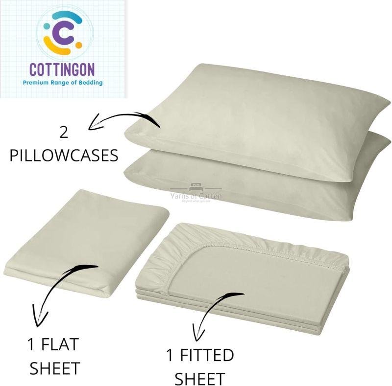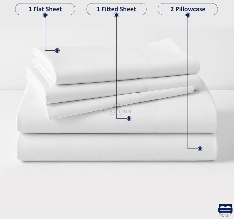 Cot Size 4 Piece Sheet Set Includes 2 Pillowcases 20" x 30", 1 Flat Sheet 66" x 96" and 1 Fitted Sheet 33" x 75", with full 360 elastic to fit Upto 7 Inch Deep Cot Bed, RV, Guest Bed, Camping Bed, TriFold Bed, Narrow Twin Bed Mattresses Keeping it Snug without Shifting.
