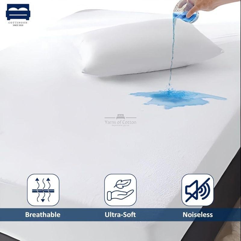 Waterproof Mattress Protector – Crafted with soft, absorbent 100% Terry Cotton and a breathable waterproof layer to protect against spills, sweat, and allergens.