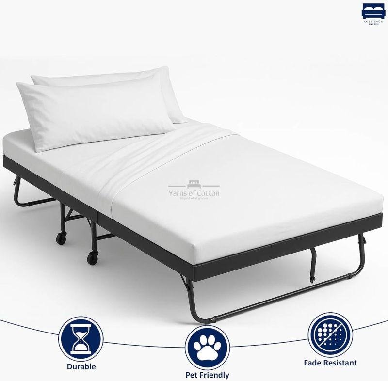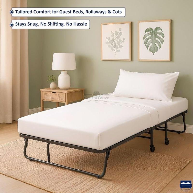 Custom Fit for Cot Mattresses : Expertly crafted to fit the smaller dimensions of cot and folding beds, including standard cots, rollaway beds, and portable guest beds. The deep pocket design and extra strong elastic ensure a secure fit, providing consistent comfort and convenience which is perfect for camps, dorms, and guest accommodations.
