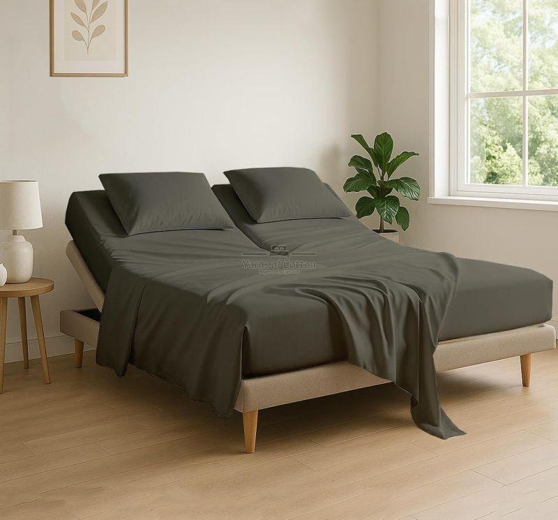 Complete 4-Piece Bedding Set – Includes 1 Flex Head King fitted sheet (34" split), 1 flat sheet, and 2 matching pillowcases – all in a sleek Dark Grey solid color.
