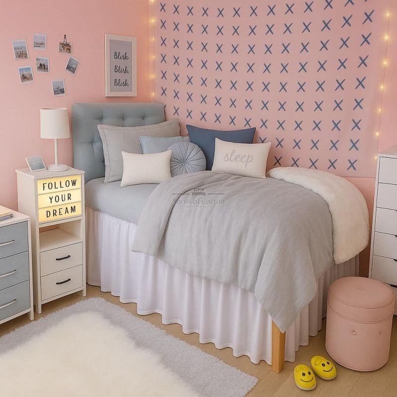 Dorm Bedding Sheet Set (4 PCs)- College Bed Skirt Twin-XL Size 32" Drop