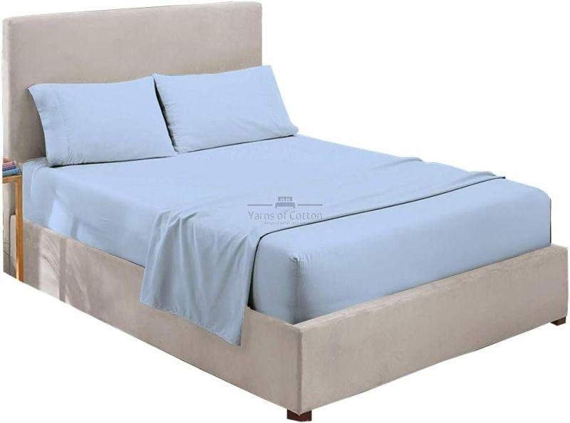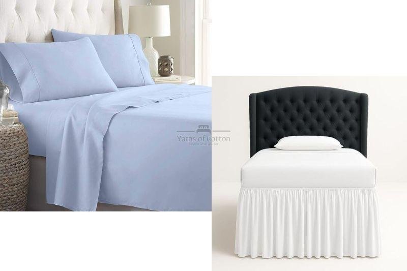 4 Piece Twin XL Dorm Bedding Set, Light Blue Cotton Sheet Set with 15" Deep Pocket Fitted Sheet & 42" Extra Long Split Corner White Dorm Bed Skirt, College Dorm Room Essentials