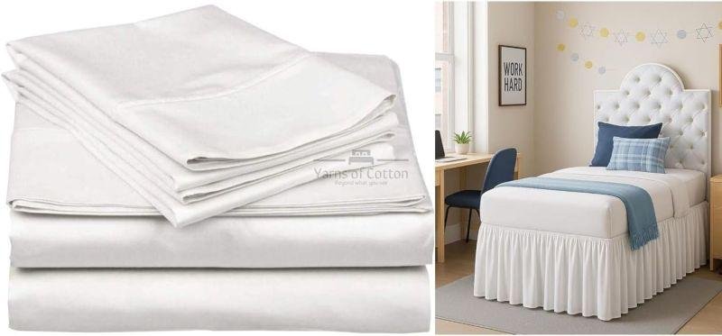 Twin XL Sheet Set, White 4 Piece Dorm Sheets & Ruffled Dorm Bed Skirt, Twin XL-38